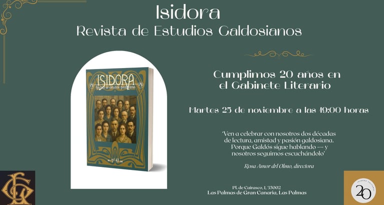 Presentación en el Gabinete Literario de Las Palmas ¡Os esperamos! 25 de noviembre a las 19:00 horas ¡Por los 20 años de Isidora!